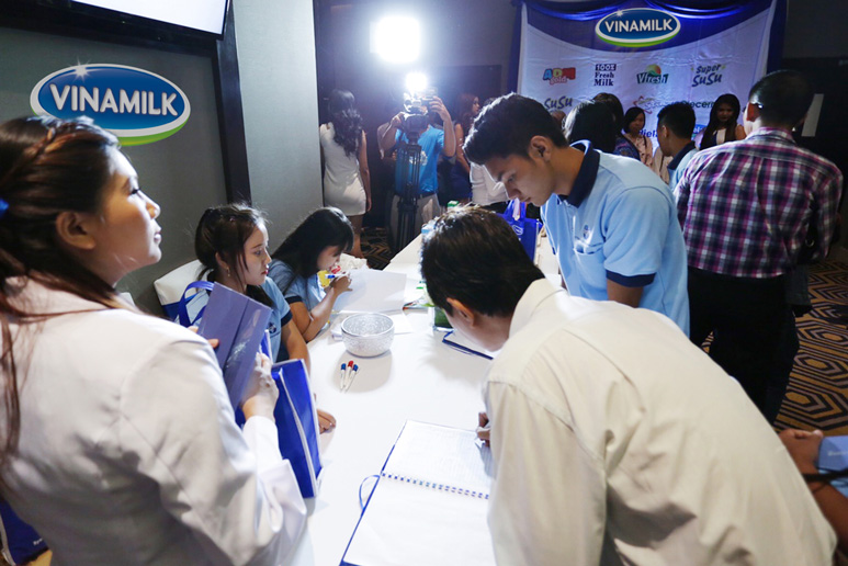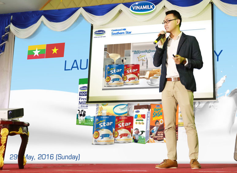 Vinamilk的国际营销部门代表正在向缅甸的消费者,媒体和合作伙伴介绍Vinamilk的多样化优质奶制品。