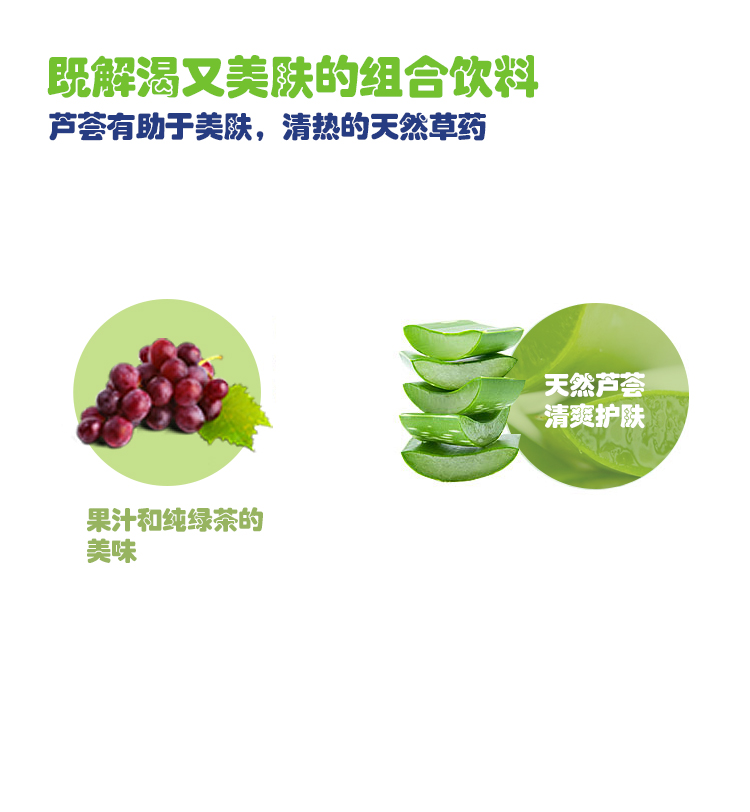 当您饮用时您会感觉到那些芦荟果肉与果汁绿茶味融在一起, 给您带来特别的感觉。