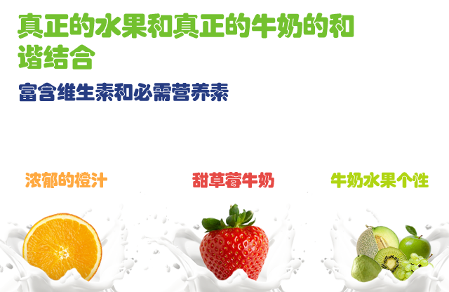 营养丰富源自牛奶, 与水果味道和谐融合, 含有丰富的维生素和矿质, 带给一种您一种美味又富有能量的饮料。